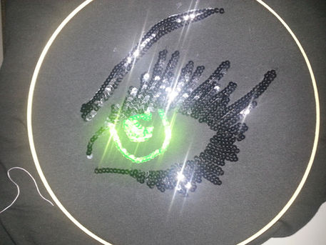 Upcycling is fun and inexpensive! Upcycling is making something useful and beautiful from something that has no purpose and could end up in landfill. You can upcycle anything if you put your mind to it! I had an old black sweatshirt and extra sequins that could use some fun. I decided to embroider my logo onto the old sweatshirt with the sequins. I shared my idea with Kristi Kawakami and she wanted to join my upcycling fun too. So I taught her how to embroider! After wearing my sweatshirt around the City and receiving many great compliments, Jessica Worthington a local photographer asked us to model for a photoshoot of us wearing our new sweatshirts! Then, it was asked to be displayed at the SFSU Upcycling Upcycling Art Exhibit and Window. Upcycling can get you into so many fun adventures!
