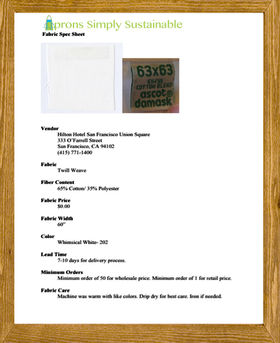 Did you know many top hotel chains throw out all tablecloths into landfill that are stained or damaged? Connie Ulasewicz from PeopleWearSF partnered with the Hilton Hotel to have these tablecloths donated to her organization so they could be repurposed into marketable products. I teamed up with Connie and develop a repurposed tablecloth brand, Aprons Simply Sustainable. The collection was featured at the Spring 2014 Senior Showcase at San Francisco State University. And me and my collection were featured on, Towards Zero Textile Waste, a film directed by Hamid Khani to promote and encourage consumers and industries to reuse textiles that are often discarded quickly and improperly.