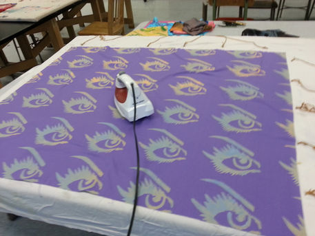 It is very important to understand color theory and be aware of proper procedures when dyeing fabric. I designed a small collection of silk scarfs with inspiration from the Cyber Culture. I used techniques such as batik, shibori, stamp making, stencil, dip, resist, wrap beam, screenprint, discharge, block print, crochet, and embroidery, using all professional methods. All designs were sketched, and color variation was expected.